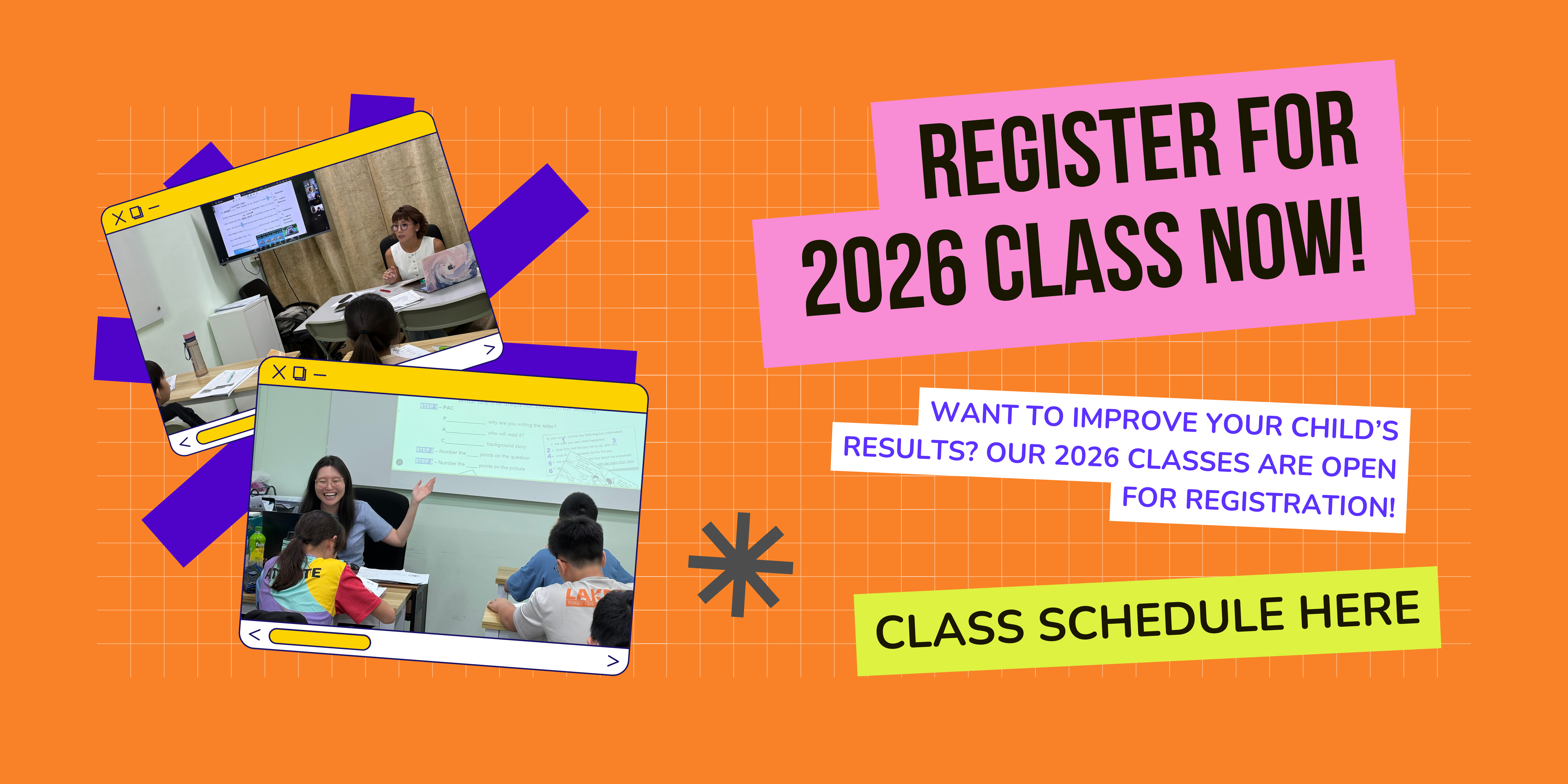 Small classroom sizes do not only provide your child with personalised attention. We also believe small classrooms help them focus better with fewer distractions, and give our tutors more opportunities to provide constructive feedback, rather than being overwhelmed by student numbers.