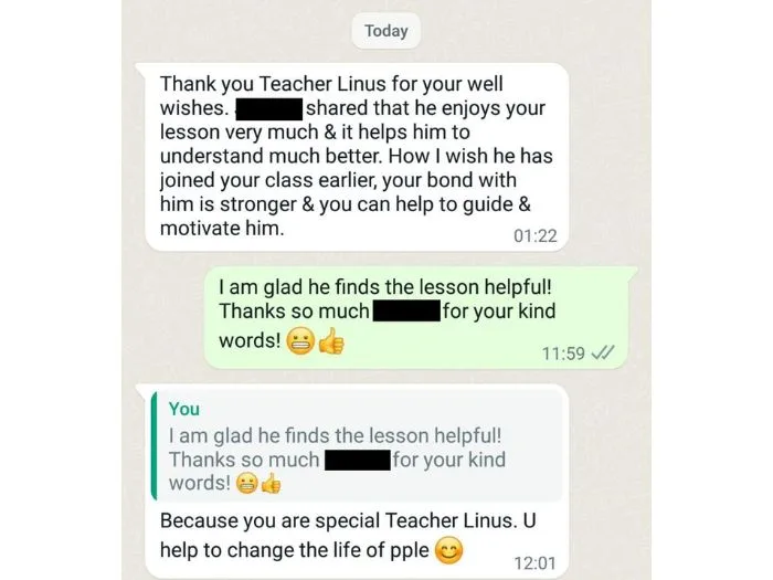 - We will place parents, students, and tutors together in a WhatsApp group. This is so you can easily reach our tutors when you have any questions.